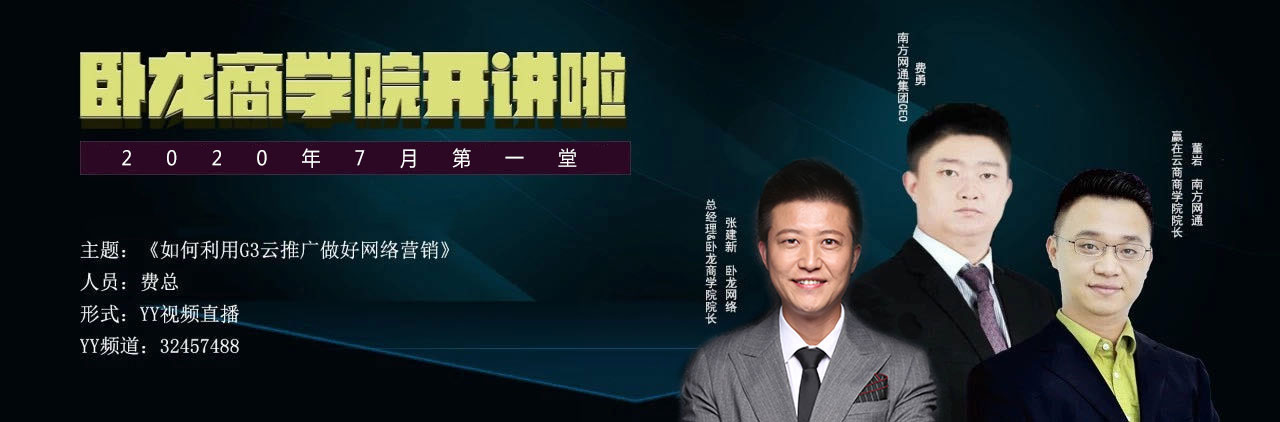 卧龙商学院是辅助企业形成长期战略规划,助力合作伙伴发展与成长的机构。以专业、精准、协同、高效的宗旨,发掘卧龙网络高质量客户中志同道合,拥有高效学习能力的企业家,培育其内容从数量到质量的战略升级,实现企业持续健康、快速发展。卧龙商学院有其三大功能:品牌文化及标准化的传播,是将学员的品牌文化和精神有效、高质量的传递给大众,建立标准化可复制的运营模式。团队的凝聚打造,即通过一系列专业的课程,进阶式培训,凝聚打造标杆团队。培育优秀企业家的摇篮,即对产品、制度、销售、演说、商务礼仪,领导力等深度专业培训,并附加领袖课程,让合作伙伴们基业长青。
